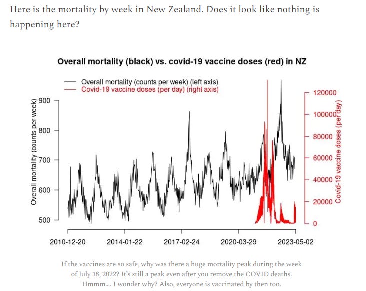 1. “Too many people are falling for the New Zealand Data trap. There are no alert signal (sic) in the New Zealand mortality trends and the data released is unusable.”