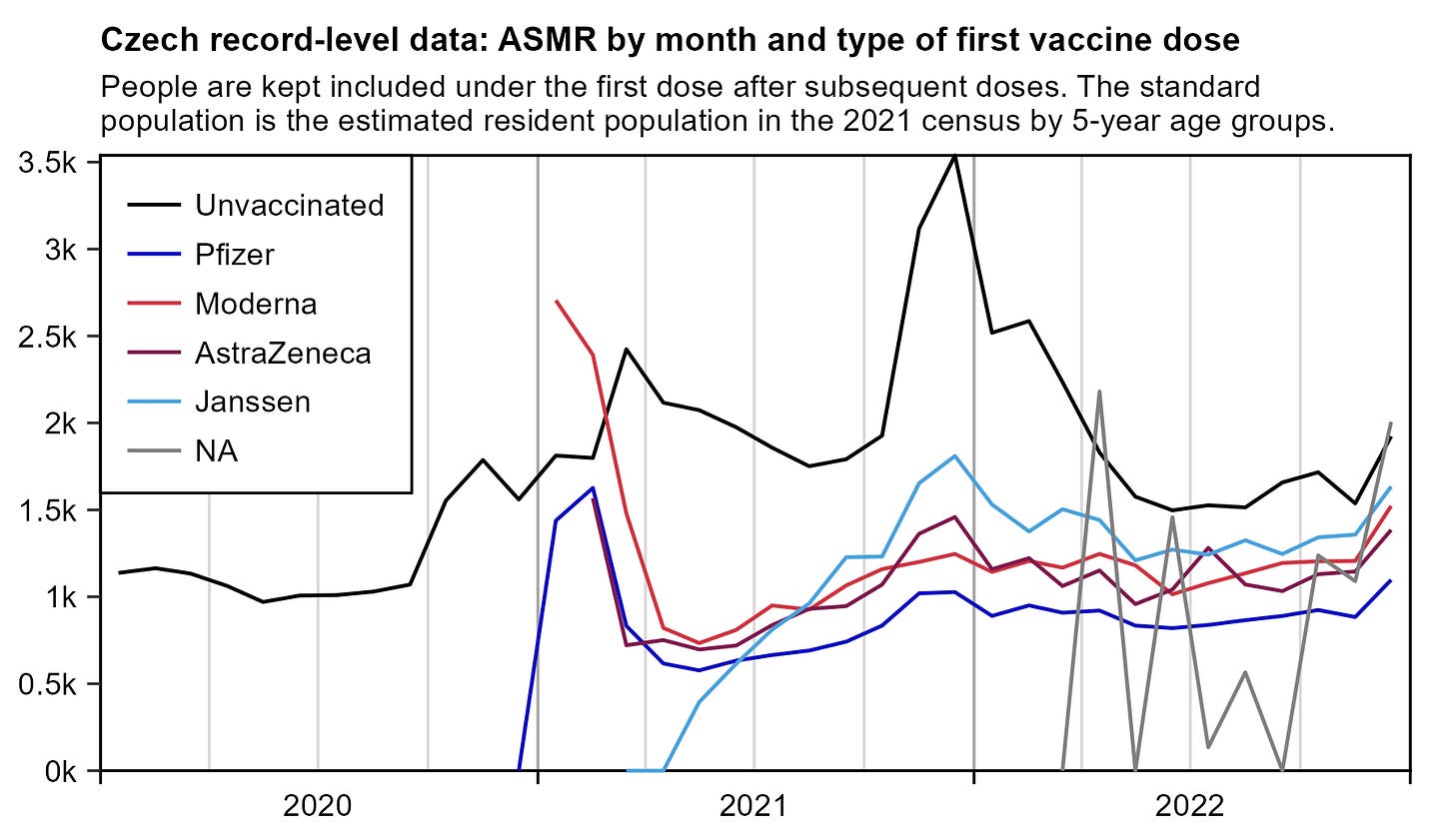 A few days ago, Steve Kirsch returned & initiated a new mess1, with analytics on the Czech Republic, derived from a bad university-produced record-level dataset2, compiled by Univerzita Palackého v Olomouci. The result is, as usual, representing the unvaccinated dying more than the vaccinated, based on awfully confounded data.