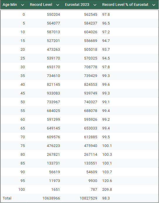 Mongol had produced a 2021 “record level data to census comparison”28, which we declined, simplifying it to simply check against EuroStat figures only (R29).