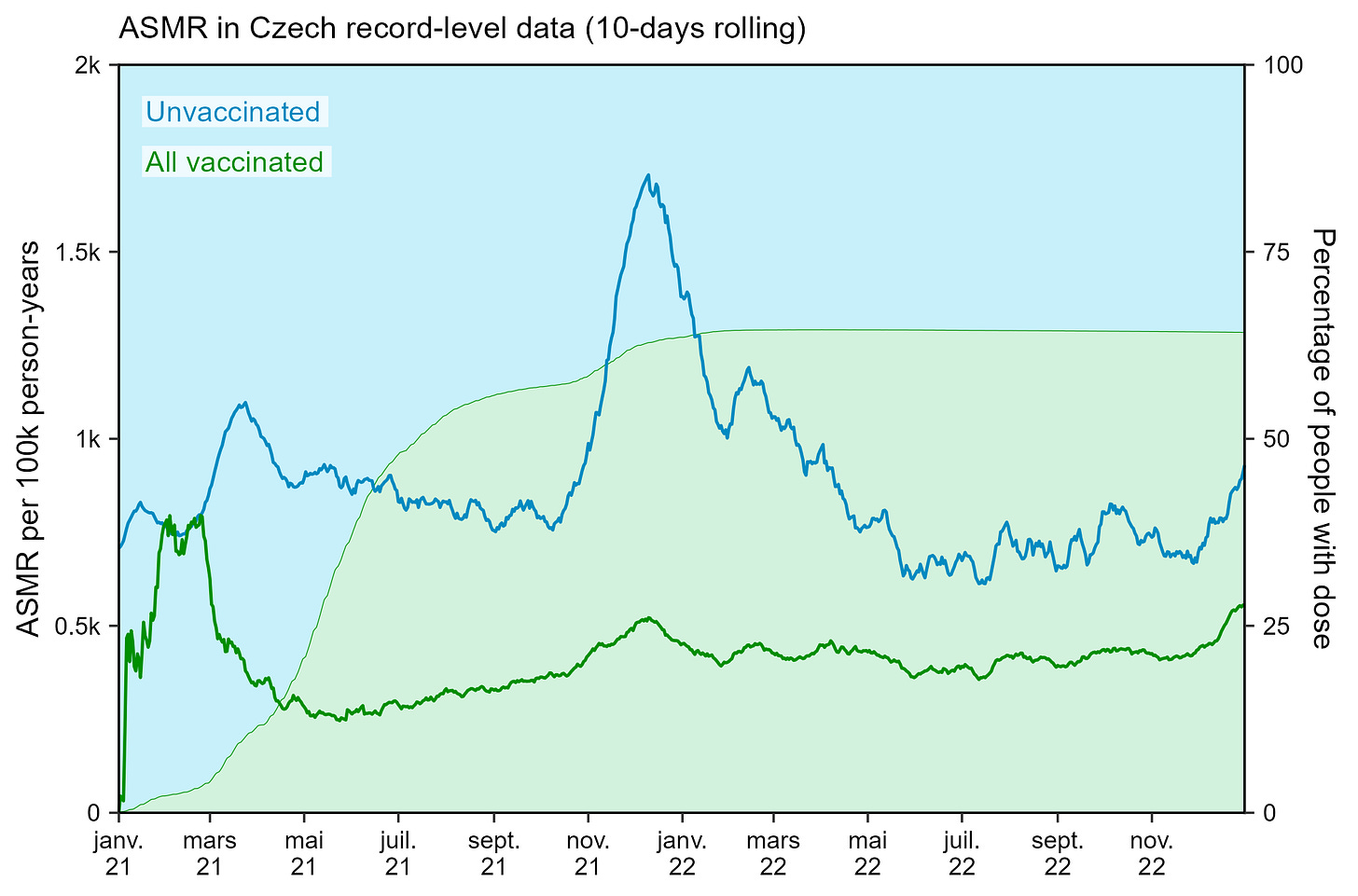 First, ASMR, like the Mongol-thing first described, are both integrating infant deaths by default - which will constitute the bulk of almost fully unvaccinated deaths under 12 - weighting on the groups balance.