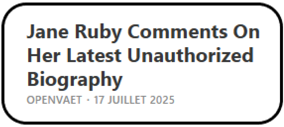 Jane Ruby Comments On Her Latest Unauthorized Biography