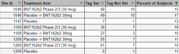 - 13 subjects (0,54%) who only received Placebo, and haven’t had their “COVBLST” tag set.
