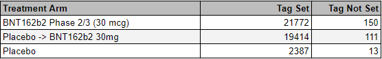 - 261 subjects (0,63%) who received BNT162b2 at some stage of the trial, and haven’t had their “COVBLST” tag set.