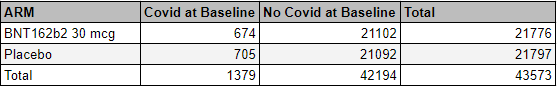 Two pages on the Month 6 interim report3 feature AEs based on the “Covid at baseline” status of the subjects, which are pasted below (on the left the 1379 subjects who had COVID at baseline - on the right the 42 194 subjects who didn’t.