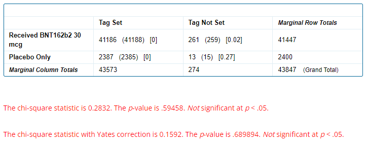 We have an imbalance which has impacted more the BNT162b2 group, but it fails to achieve statistical significance.