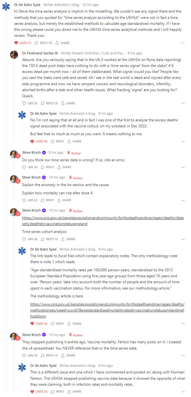 Meanwhile, Steve’s Substack’s comments section looks as the following for some 11 hours, and he found nothing to reply to Dr Ah Kahn Syed - so we won’t lose too long addressing that second part.