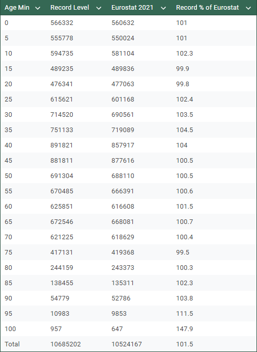 Mongol had produced a 2021 “record level data to census comparison”28, which we declined, simplifying it to simply check against EuroStat figures only (R29).