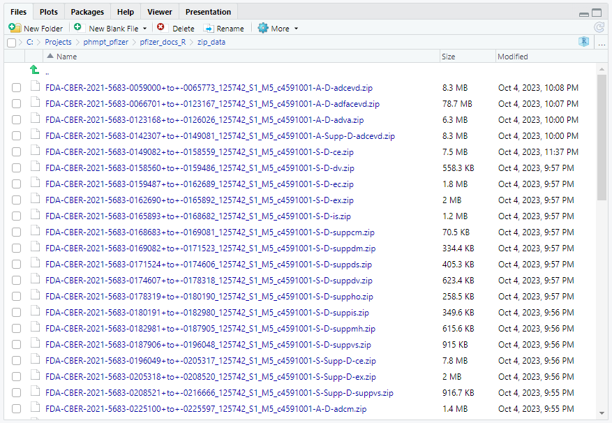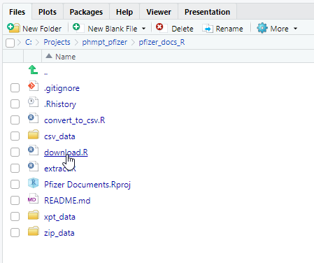 2. Open “Pfizer Documents.Rproj” with R Studio (a simple double click on it should suffice).