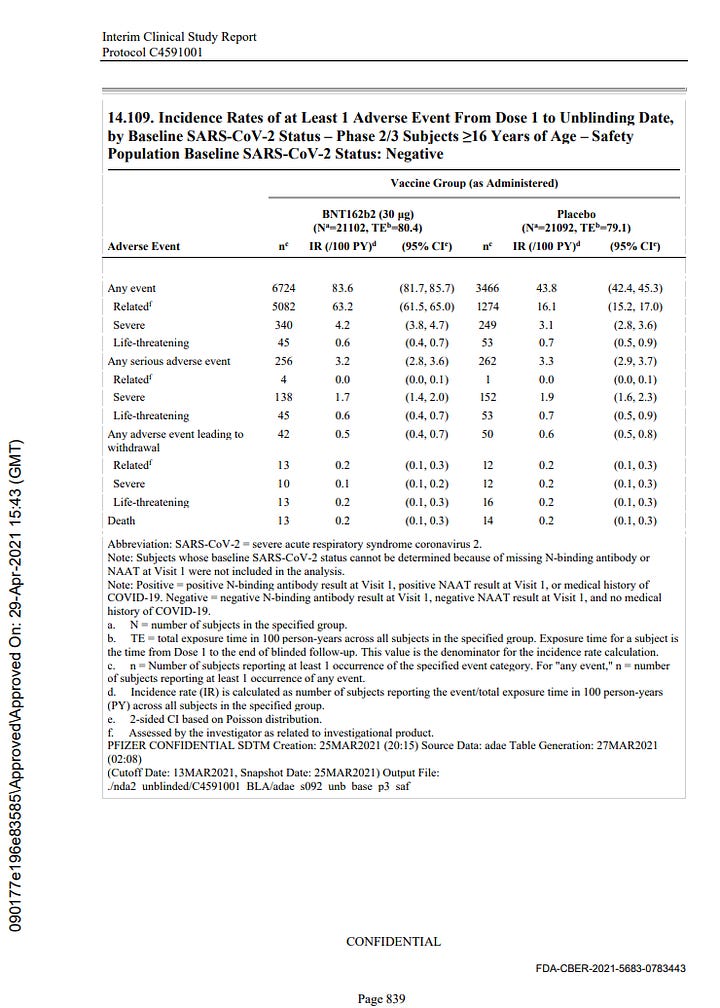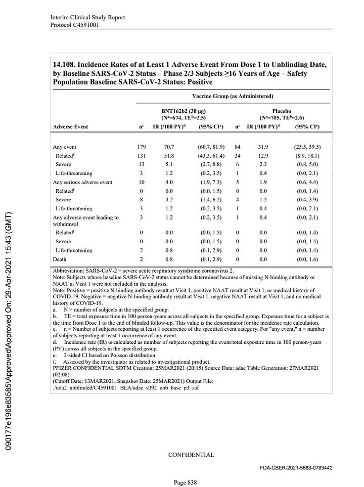 This figure is surprising, as “43 573” is detailed absolutely nowhere in the BLA memorandum4 populations breakdown, or the corresponding study, by Stephen J. Thomas et al. (published on MedRxiv5 on July 28, 2021 and in the NEJM6 on November 4, 2021).