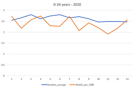 Deaths are indeed below baseline in most age groups in Sweden since the vaccine roll-out. But so were they during 2020, prior the “vaccines” - and there is no visible impact of their alleged effectiveness in the deaths data.