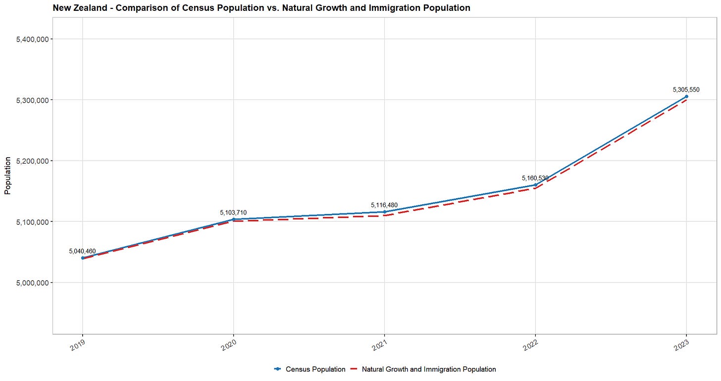 The country’s size, the complexity of its borders, its attractiveness to migrants, and the relative openness of legal migration policies all influence illegal immigration. Therefore, the margin of error in U.S. population estimates will always be greater than in a smaller country such as New Zealand2, where estimates closely match figures reconstructed from online datasets on natural growth and legal migration data.